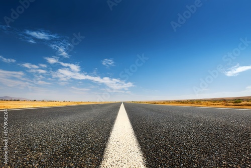 Naklejka premium A ribbon of road sailing smoothly into the blue sky dream cobwebs land.