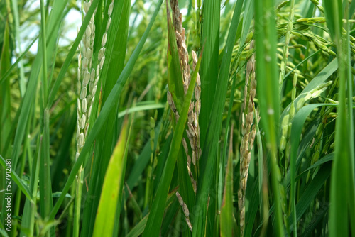 © Ombee, Obraz premium A Rice blast is a fungus that feeds on the rice plant.