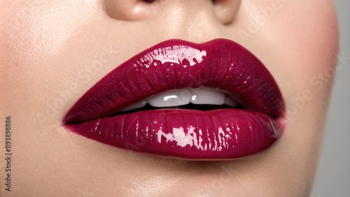 Fototapeta premium A rich berry lip color glimmers with a wetlook finish. The high gloss serves to intensify the color highlighting the contours and giving them an irresistible allure that draws the