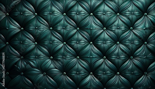 Fototapeta premium A rich green tufted fabric with a glossy finish, featuring a pattern of...
