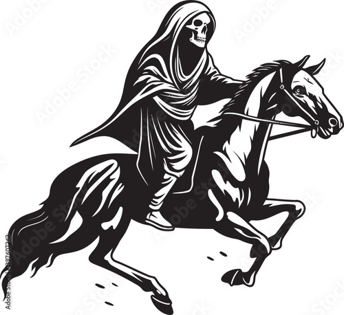 Fototapeta premium A Ride Through Eternity Hooded Death Galloping on Its Bone Steed