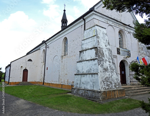 Fototapeta premium a rime-catholic branch church built in the neo-baroque style in 1625 by the Carmelite shoemaker monks, currently dedicated to the Nativity of the Blessed Virgin Mary in the village of Wąsocz in Podlas