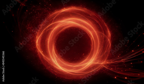 © Jason Yoder, Obraz premium A ring of red neon energy waves on a dark background with magical sparks