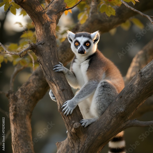 © Faha Studio, Fototapeta premium A Ring-tailed Lemur in a Tree