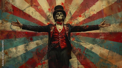© Nawarit, Fototapeta premium A ringmaster in a top hat announcing the next act with a flourish,