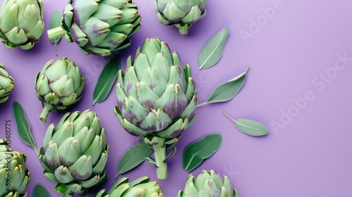 © Heinan Drawings, Obraz premium A ripe artichoke surrounded by some artichoke hearts