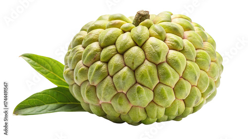 © Md, Obraz premium A ripe custard apple fruit with green leaves isolated on transparent background