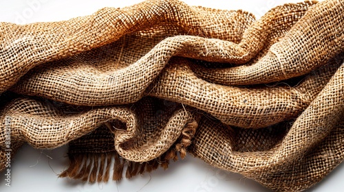 Fototapeta premium A ripped piece of burlap on a blank canvas, used for packing.
