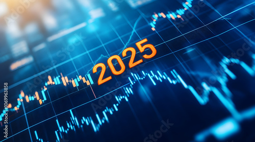 Fototapeta premium A rising stock market chart with the year '2025' at the peak