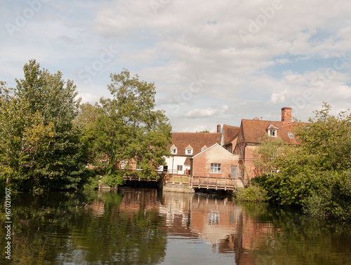 Fototapeta premium a river cottage scene in summer light in flatford mill near dedham in constable country