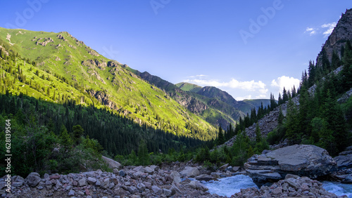 © Daniil_98_03_09, Obraz premium a river in a beautiful mountain gorge. the green gorge. summer mountains