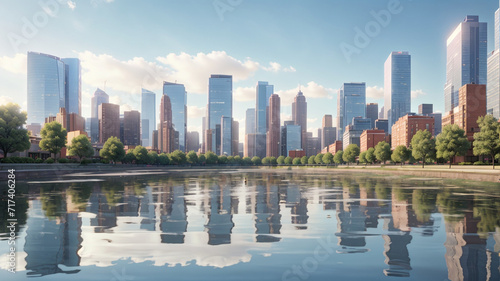 © itnozirmia, Fototapeta premium A river running through a city next to tall buildings