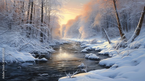 Fototapeta premium a river running through a forest filled with lots of trees and a forest filled with lots of trees and lots of trees.