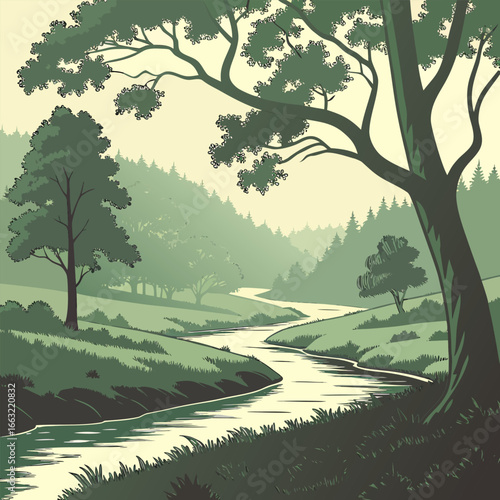 © Shofikul islam, Naklejka premium A River Runs Through It Forest reflection.