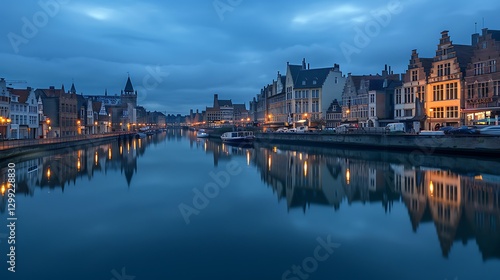 © Mahmud Creative, Obraz premium a river with buildings and a sunset