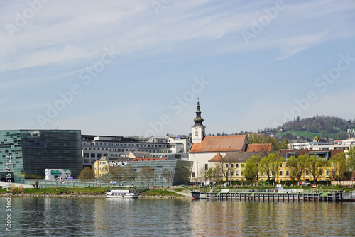 Naklejka premium A riverside embankment in Linz, the river Danube, Austria