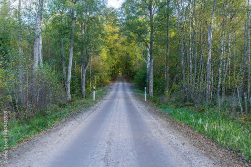 Naklejka premium A road and fall colors at a Swedish woods in the autumn season
