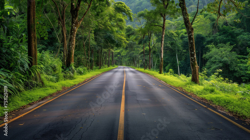 © MuhammadQaiser, Fototapeta premium a road between greenery with a tree