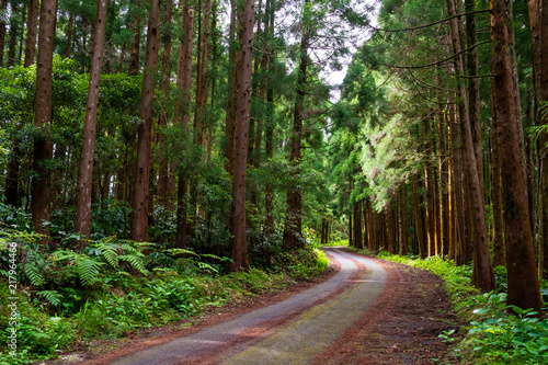 © Sário Nunes, Obraz premium A road between some trees on a sunny day