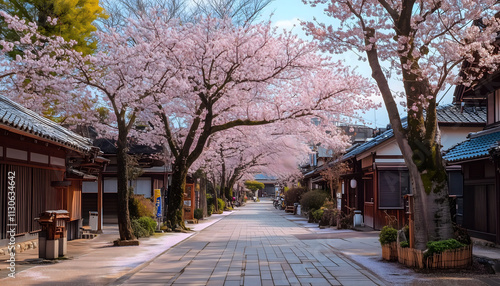Fototapeta premium A road filled with beautiful cherry blossom trees