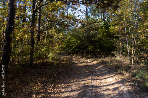 © rsooll, Fototapeta premium A road for cars in an autumn forest with trees