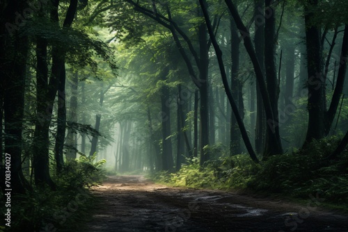 © Tarun, Obraz premium A road in a forest filled with trees