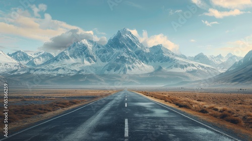 Fototapeta premium A road leading towards a distant mountain range, symbolizing the ambitious...