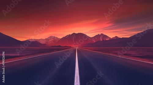 © Gedel, Fototapeta premium A Road Leading Towards the Mountains at Sunset