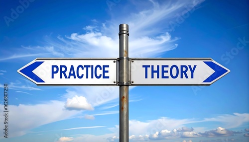 © Itiliadc, Fototapeta premium A road sign choice between practice and theory