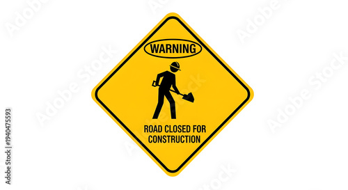 © maiwya, Obraz premium A road sign warns drivers of construction ahead on a closed road