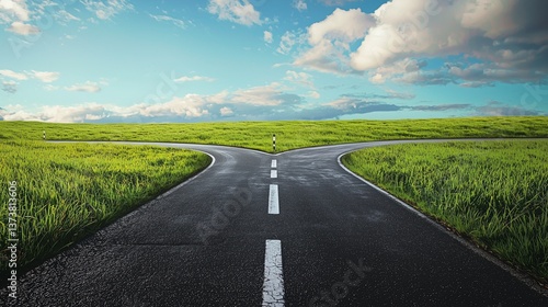 © TensorSpark, Fototapeta premium A road splits into two paths, symbolizing choice and decision-making.