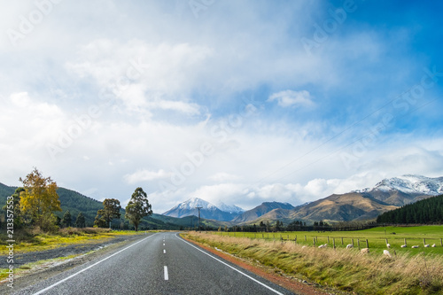 © Klanarong Chitmung, Naklejka premium A road to the snow mountain. Fiordland, New Zealand.