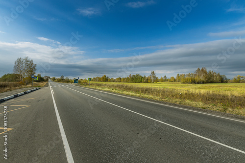 © Sergei, Fototapeta premium A road with a clear blue sky above it