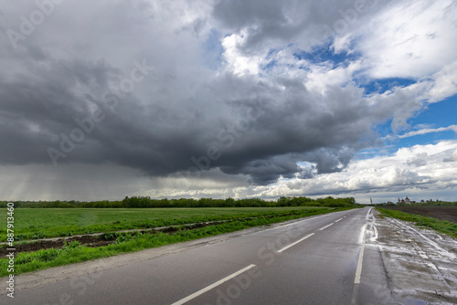 © Sergei, Naklejka premium A road with a cloudy sky above it