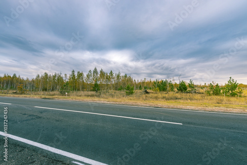 Fototapeta premium A road with a few trees in the background