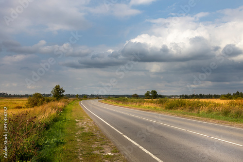 © Sergei, Fototapeta premium A road with a few trees in the background and a cloudy sky