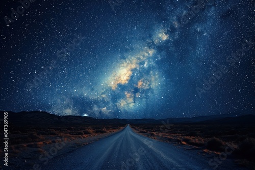 © Dusit, Fototapeta premium A road with a long line of stars in the background.
