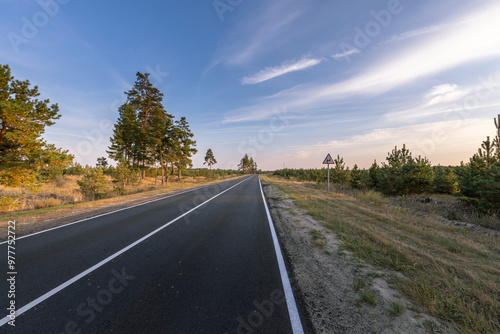 © Sergei, Naklejka premium A road with a tree in the middle of it