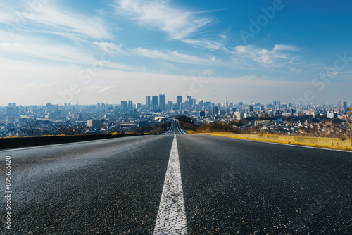 © Kitta Studio, Fototapeta premium a road with a view of a city and a city in the background.