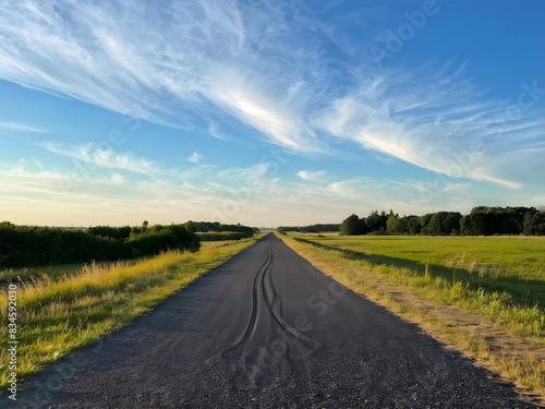 Fototapeta premium A road with tire tracks on it and the sky is background beauty nature