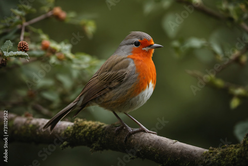 Fototapeta premium A robin sitting on a tree branch
