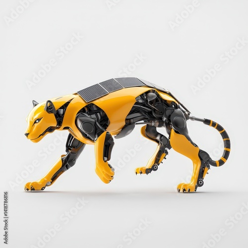 © Sangsung, Obraz premium A robot cat is walking on a white background