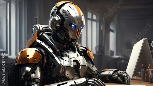 © AI Gallery Vision, Naklejka premium A robot does the work for a human