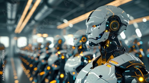Fototapeta premium A robot in a factory, surrounded by other robots
