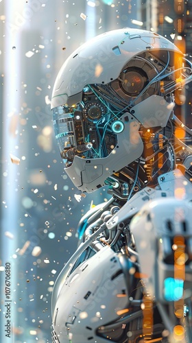 © KerXing, Fototapeta premium A robot with a blue face and orange arms