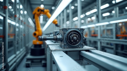 © alivealivea, Fototapeta premium A robotic assembly line manufacturing advanced propulsion for electric vehicles