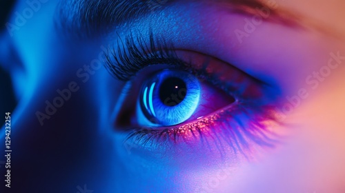 Fototapeta premium A robotic eye scanning and changing colors, symbolizing AI and technology.