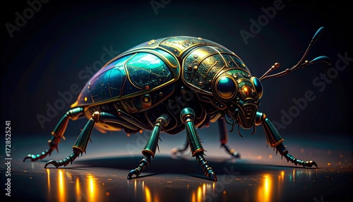 Naklejka premium A robotic jewel beetle gleams with an iridescent metallic shell in rich colors.