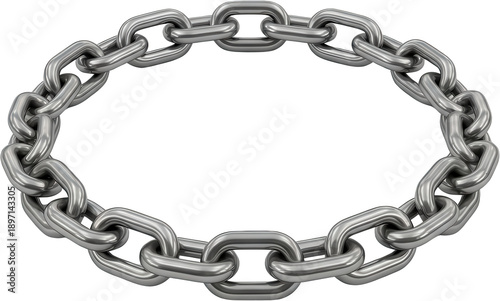 Obraz premium A robust metallic chain forming an oval shape showcasing interconnected heavy duty links crafted from gleaming silver metal connection strength security industry technology