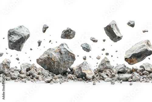 © KingN, Naklejka premium A rock or space rock floating on a white background.